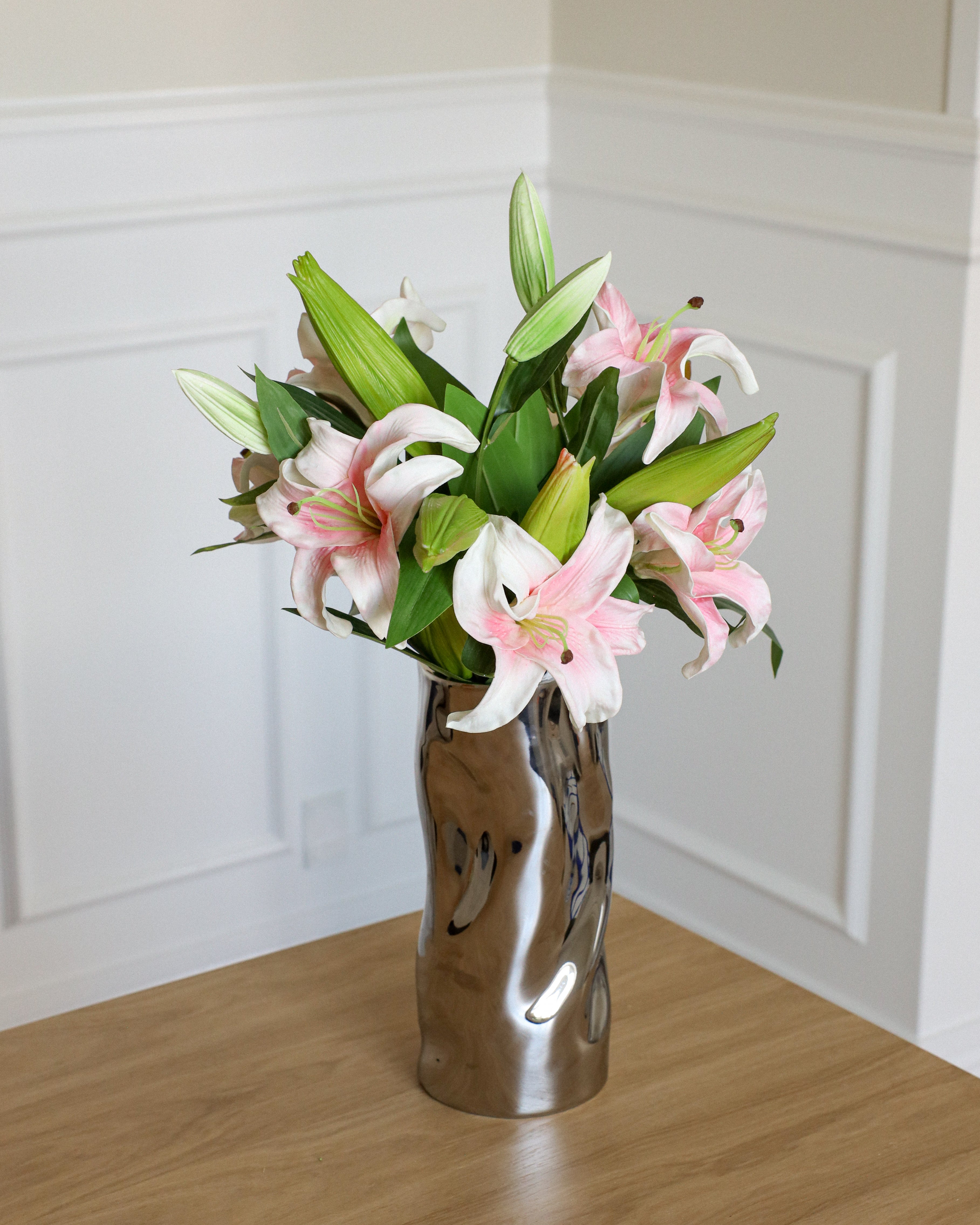 Entdecken Sie unsere exquisite Auswahl an Kunstblumen. Wählen Sie einen unserer handgebundenen Sträuße oder lassen Sie Ihrer Kreativität freien Lauf und stellen Sie Ihren eigenen Blumenstrauß mit Stielen zusammen, die die feinen Details der Natur perfekt nachbilden.