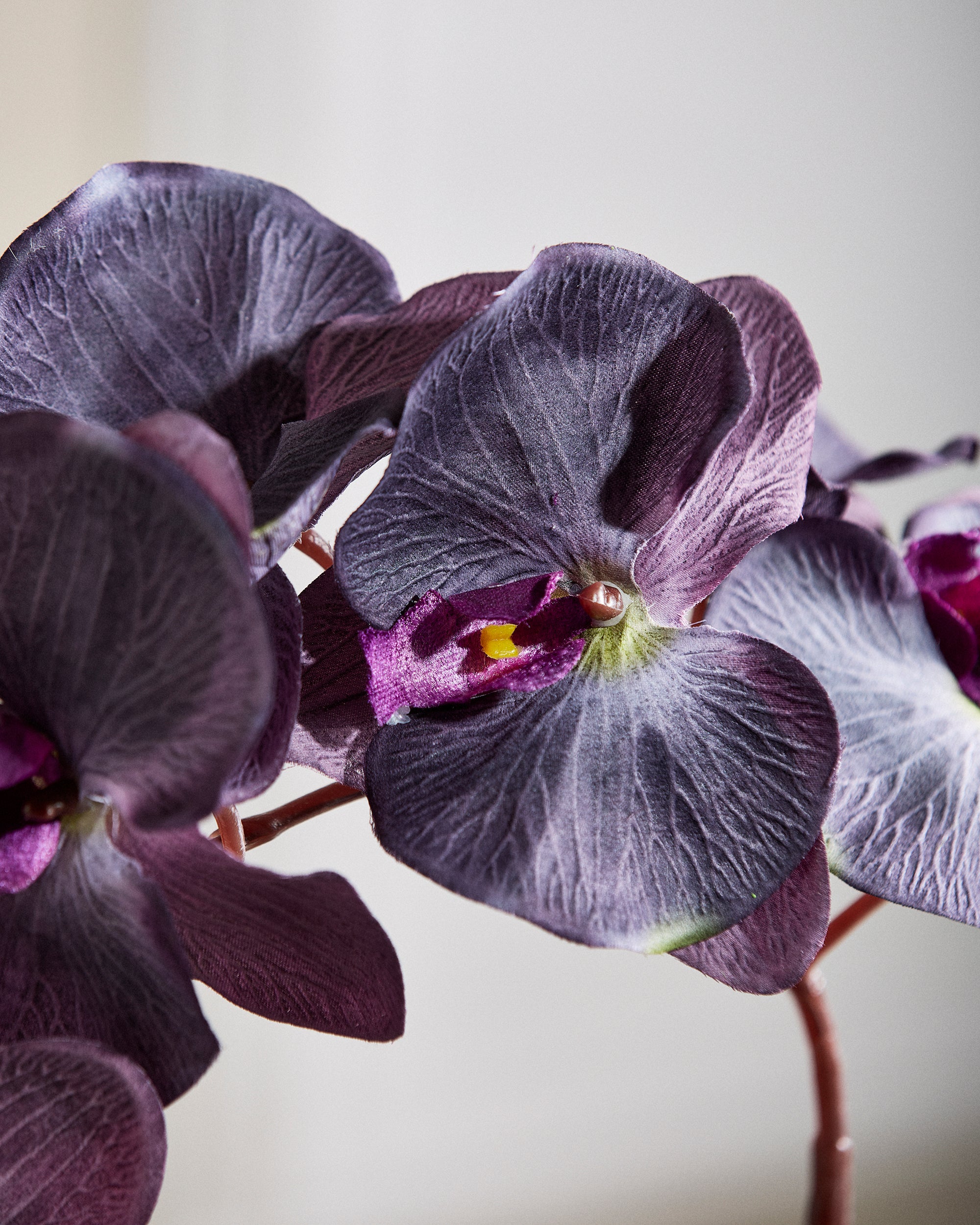 Die künstliche Schmetterlingsorchidee mit neun Blütenköpfen ist eine sorgfältig gefertigte Kunstblume, die die Eleganz echter Orchideen einfängt. Sie ist 96 cm hoch und besteht aus neun latexbeschichteten Blüten auf einem Kunststoffstiel, der mit einem Eisendrahtkern verstärkt ist. So lässt sie sich leicht zuschneiden und flexibel an Ihre Dekorationswünsche anpassen.