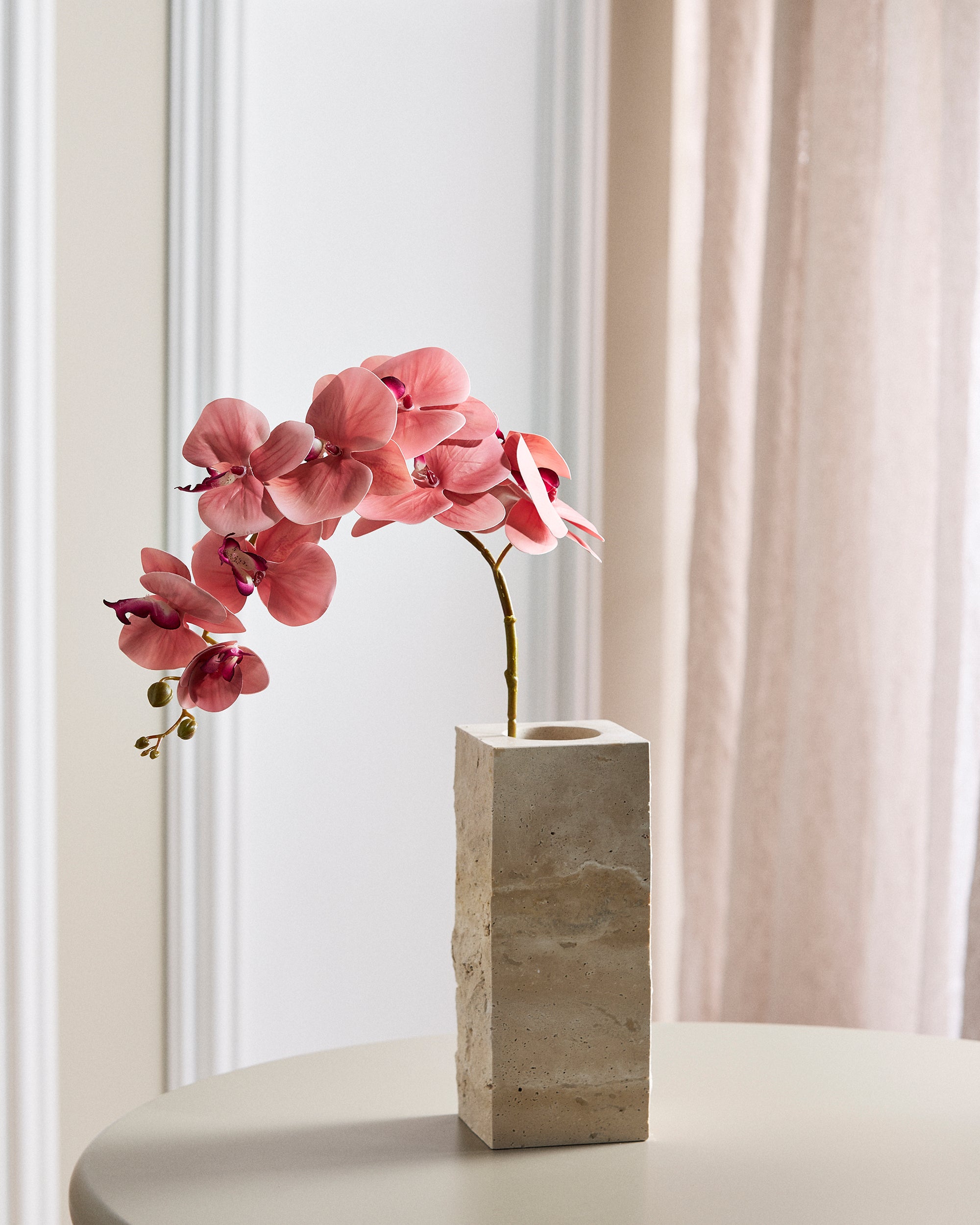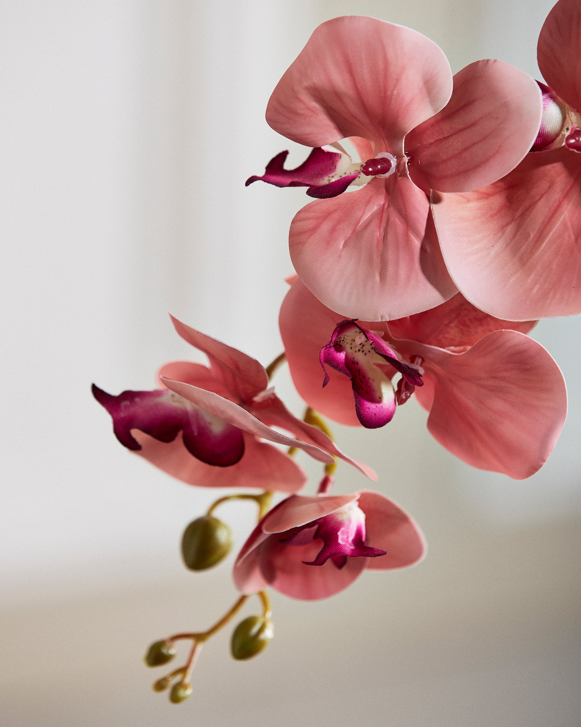 Die künstliche Schmetterlingsorchidee mit neun Blütenköpfen ist eine sorgfältig gefertigte Kunstblume, die die Eleganz echter Orchideen einfängt. Sie ist 96 cm hoch und besteht aus neun latexbeschichteten Blüten auf einem Kunststoffstiel, der mit einem Eisendrahtkern verstärkt ist. So lässt sie sich leicht zuschneiden und flexibel an Ihre Dekorationswünsche anpassen.