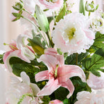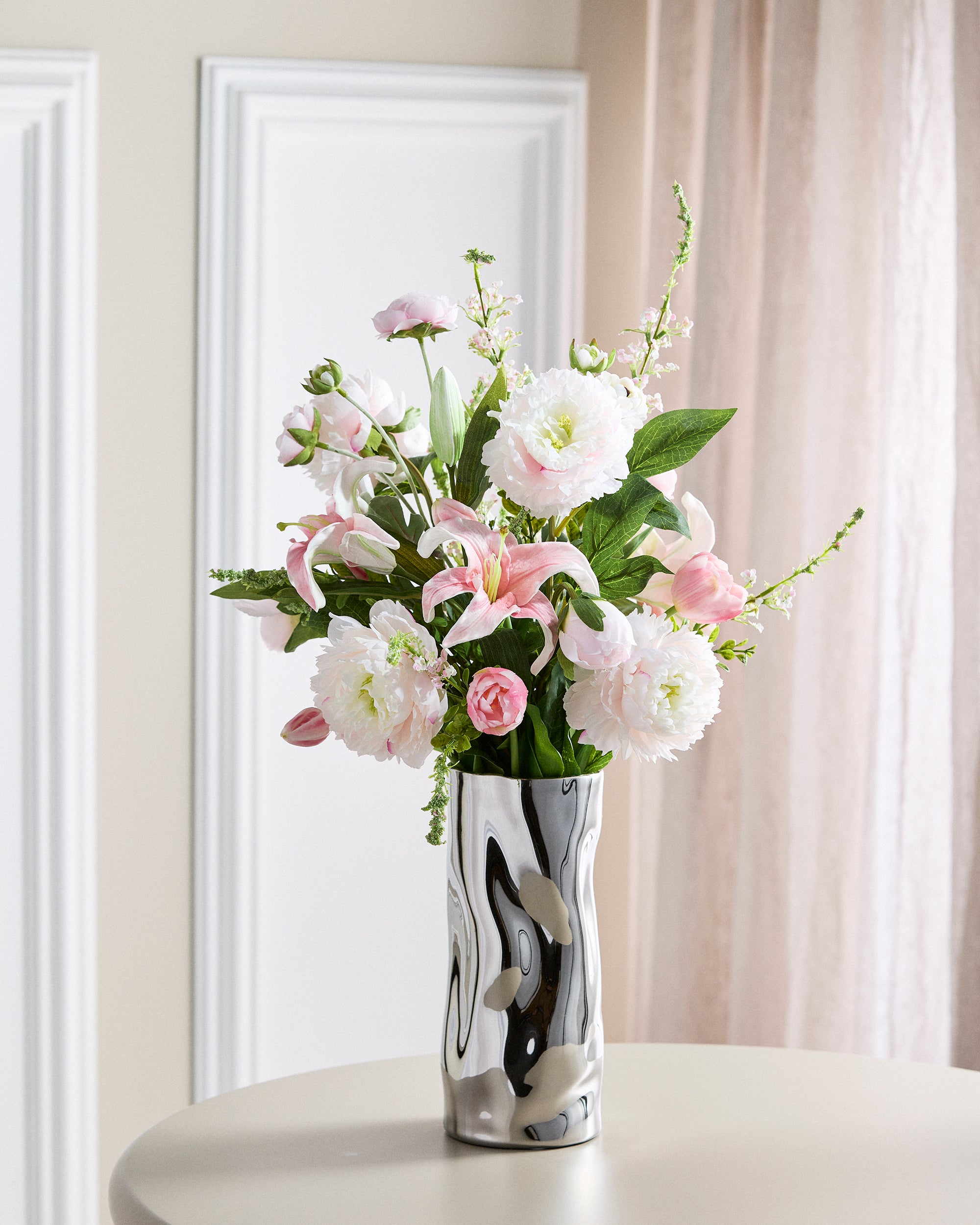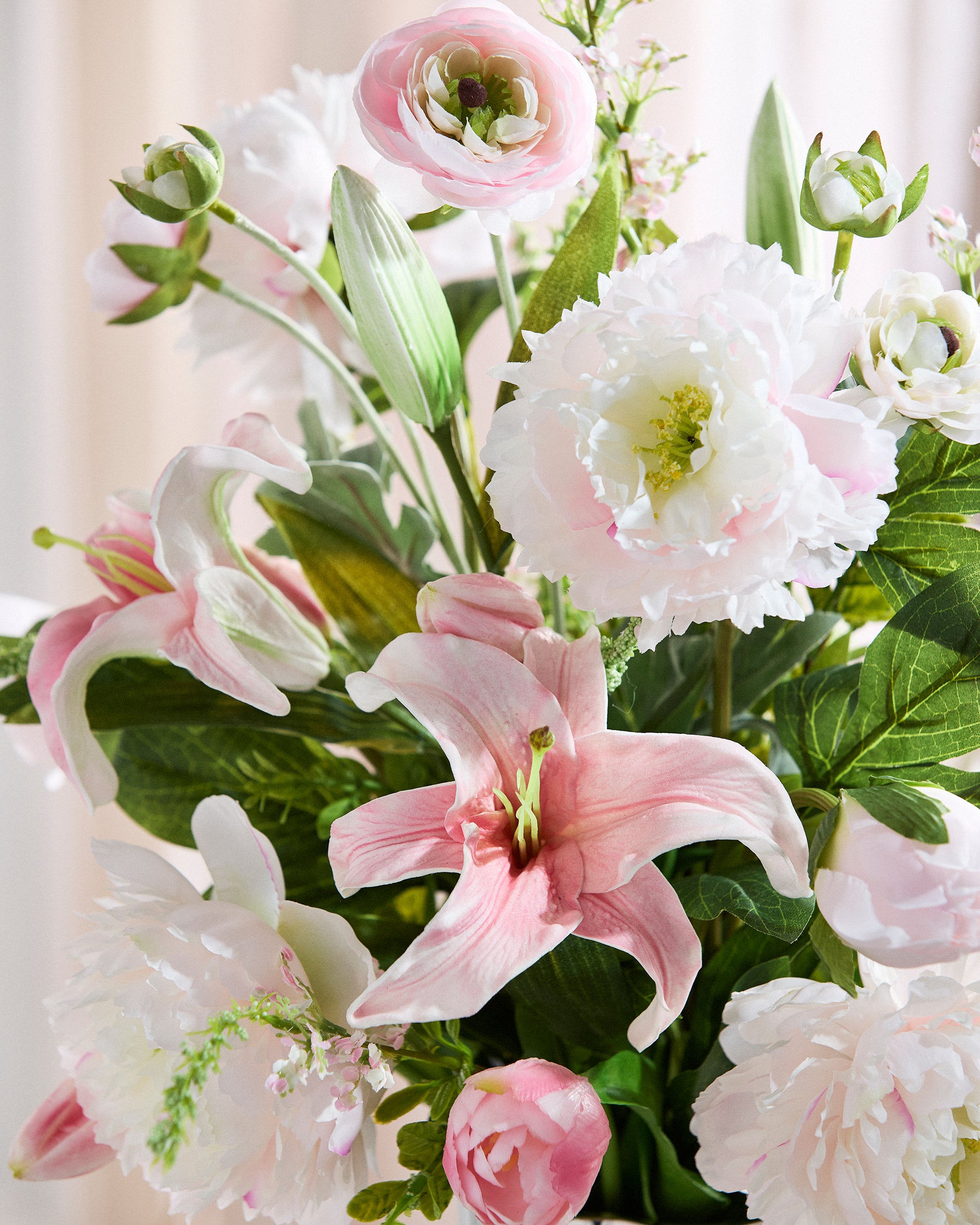 Der „Zuckerwatte“-Blumenstrauß ist ein fantasievolles Arrangement, inspiriert von den zarten, zuckersüßen Farben der Zuckerwatte, das ein herrliches Spektrum an Rosatönen einfängt. Elegante rosa Lilien verleihen diesem bezaubernden Strauß mit ihren anmutigen Blüten einen Hauch von Raffinesse. Hellrosa Salbei und hellrosa Ranunkeln sorgen für eine zarte, luftige Textur und unterstreichen die Leichtigkeit des Straußes. Zartrosa Pfingstrosen mit ihren geschichteten Blütenblättern verleihen dem Strauß einen üppigen, romantischen Charme. Zusammen bilden diese Blumen eine verträumte, pastellfarbene Symphonie, die die süße, nostalgische Essenz der Zuckerwatte heraufbeschwört und so jedem Raum einen Hauch von verspielter Eleganz verleiht.