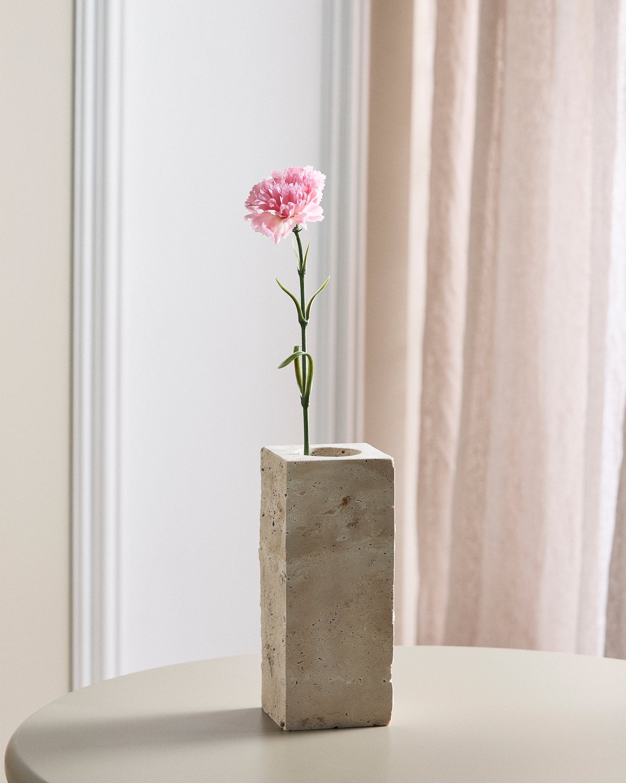 Jede Nelke ist handgefertigt aus Seide mit einer weichen Latexbeschichtung, die den Blütenblättern eine lebendige Struktur und Haptik verleiht. Die gewellten, geschichteten Blütenblätter in einem dezenten Champagnerton schaffen einen vollmundigen und realistischen Eindruck, der sowohl in klassische als auch moderne Dekorationen wunderbar passt.