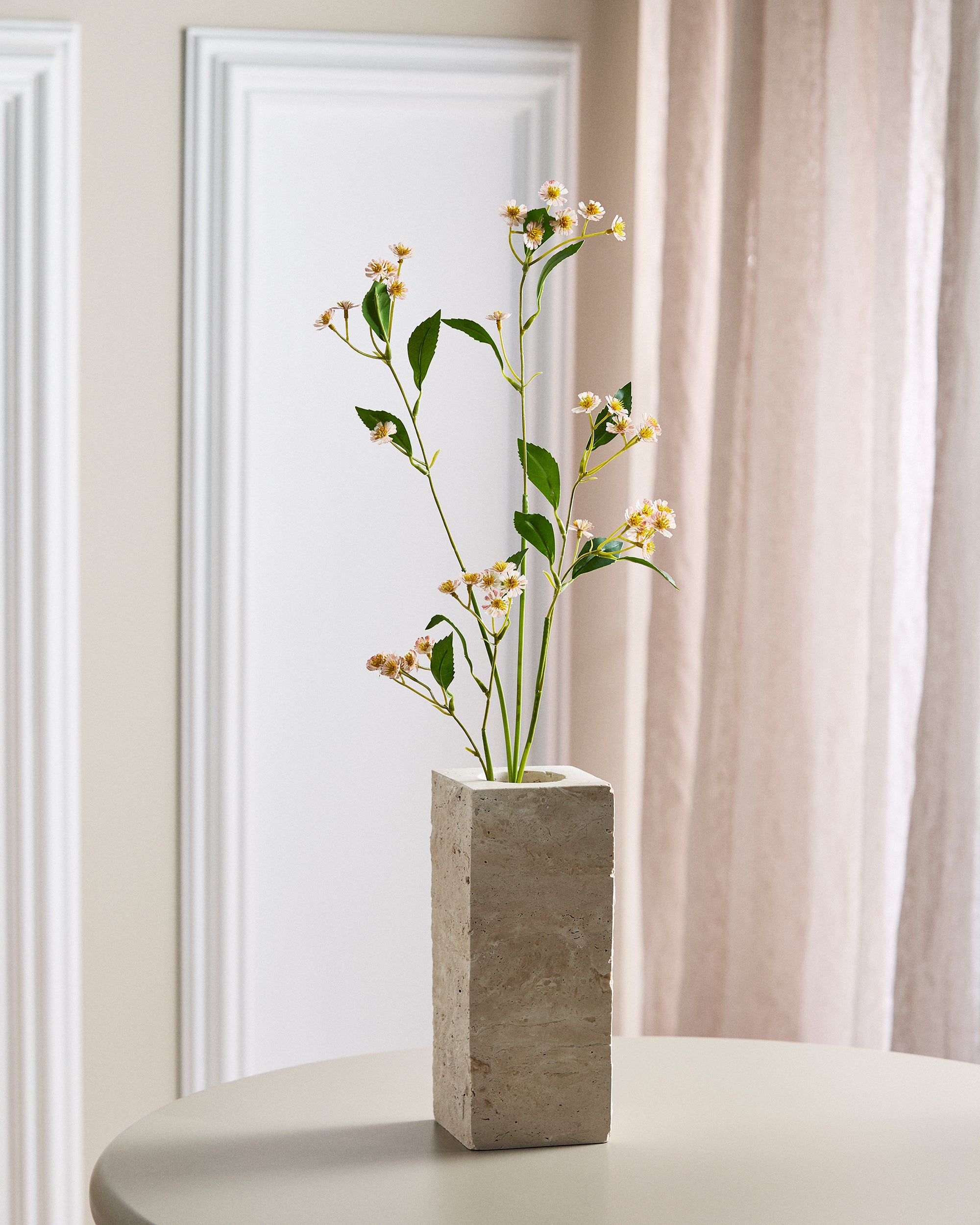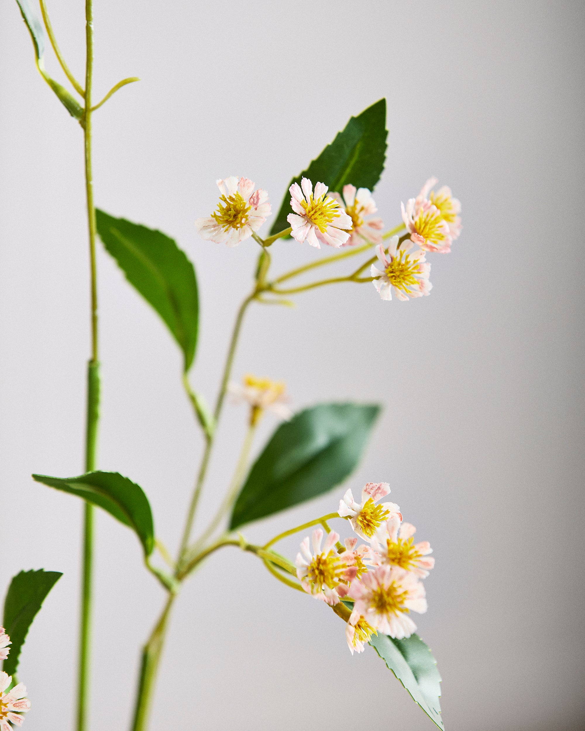 Unsere Kamillenmargerite in Pink ist ein hoher und anmutiger Stiel mit vielen feinen, kleinen geöffneten Blütenköpfen mit rosa Seidenblättern und weichen gelben Zentren – der Stiel und die Blätter sind aus Kunststoff für ein realistisches Aussehen gefertigt.