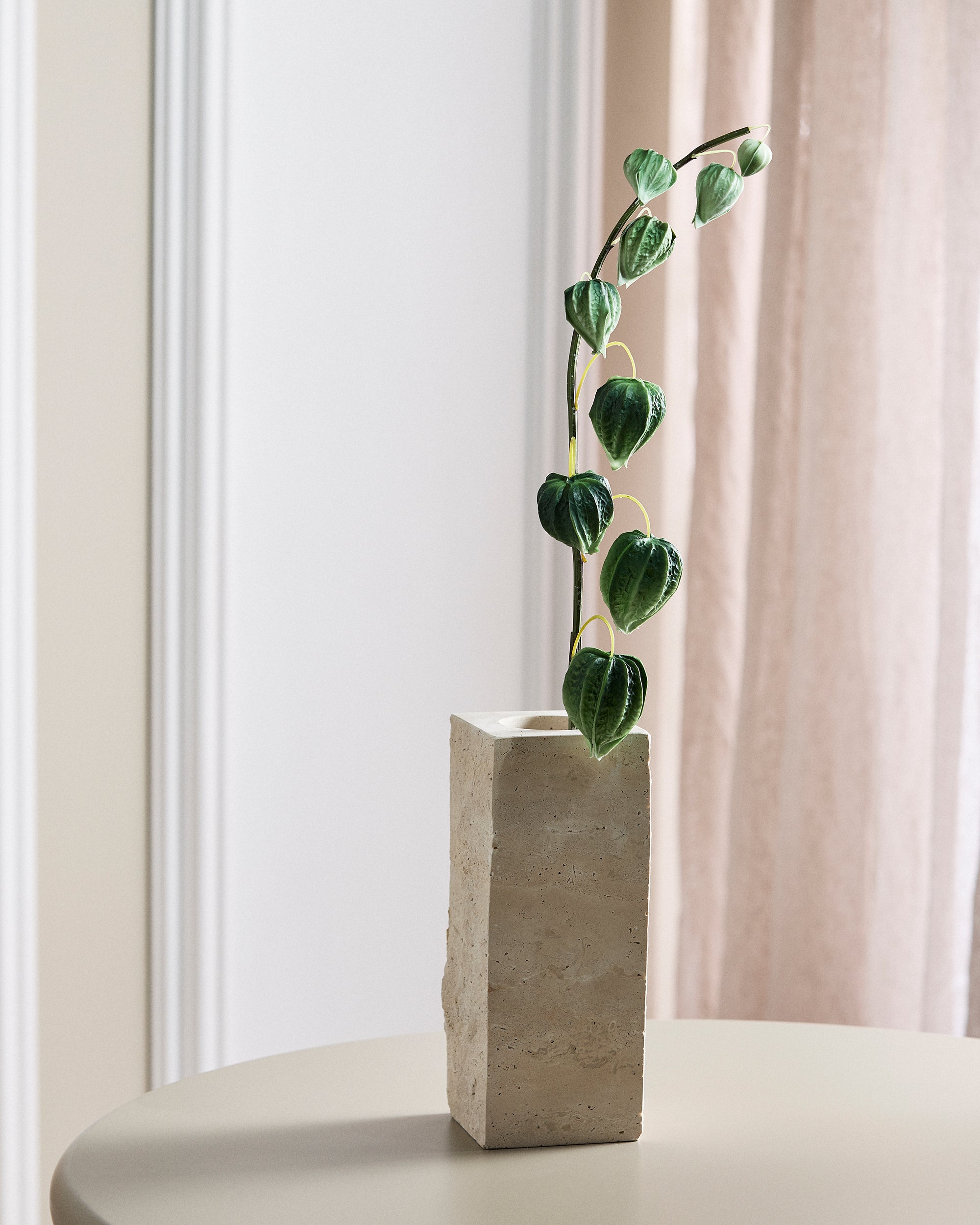 Jeder Physalis-Stängel ist handgefertigt und besteht aus zarten, papierartigen Laternen, die kleine, detailreiche Beeren in warmen Grüntönen umschließen. Die natürliche Variation in Form, Farbe und Textur erzeugt einen beeindruckenden Realismus, der echte Physalis-Früchte perfekt imitiert.