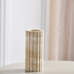 Unsere exklusive Kumo Vase besteht aus natürlichem, rohem Travertin. Mit ihrer gewellten Oberfläche erzeugt sie einen schönen Kontrast zwischen dem rauen und femininen Look.