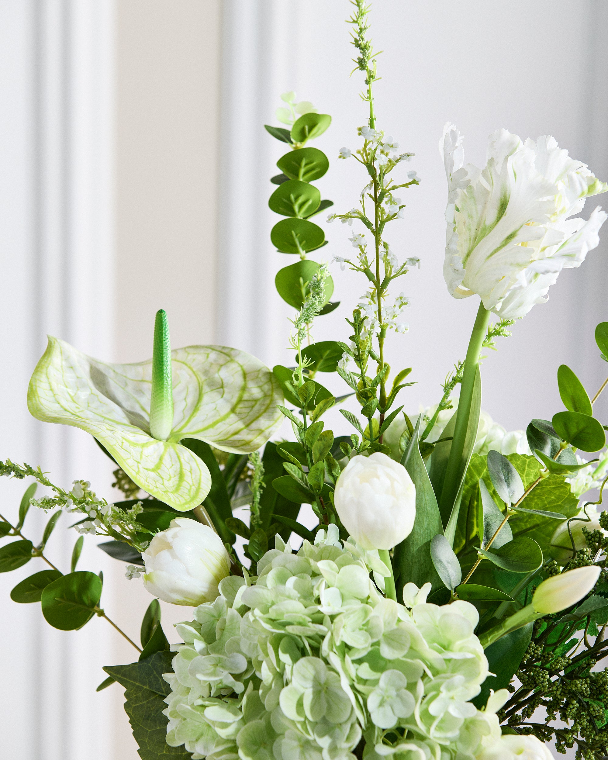 Cool Cucumber ist ein frischer und raffinierter Strauß in kühlen Grün- und Weißtönen. Er hat einen klaren und modernen Look, perfekt für alle, die Ruhe und Ausgeglichenheit in ihrem Zuhause lieben. Geschaffen für Sie, die sich einen Strauß mit ewiger Frische und subtilem Luxus für Ihre Einrichtung wünschen.