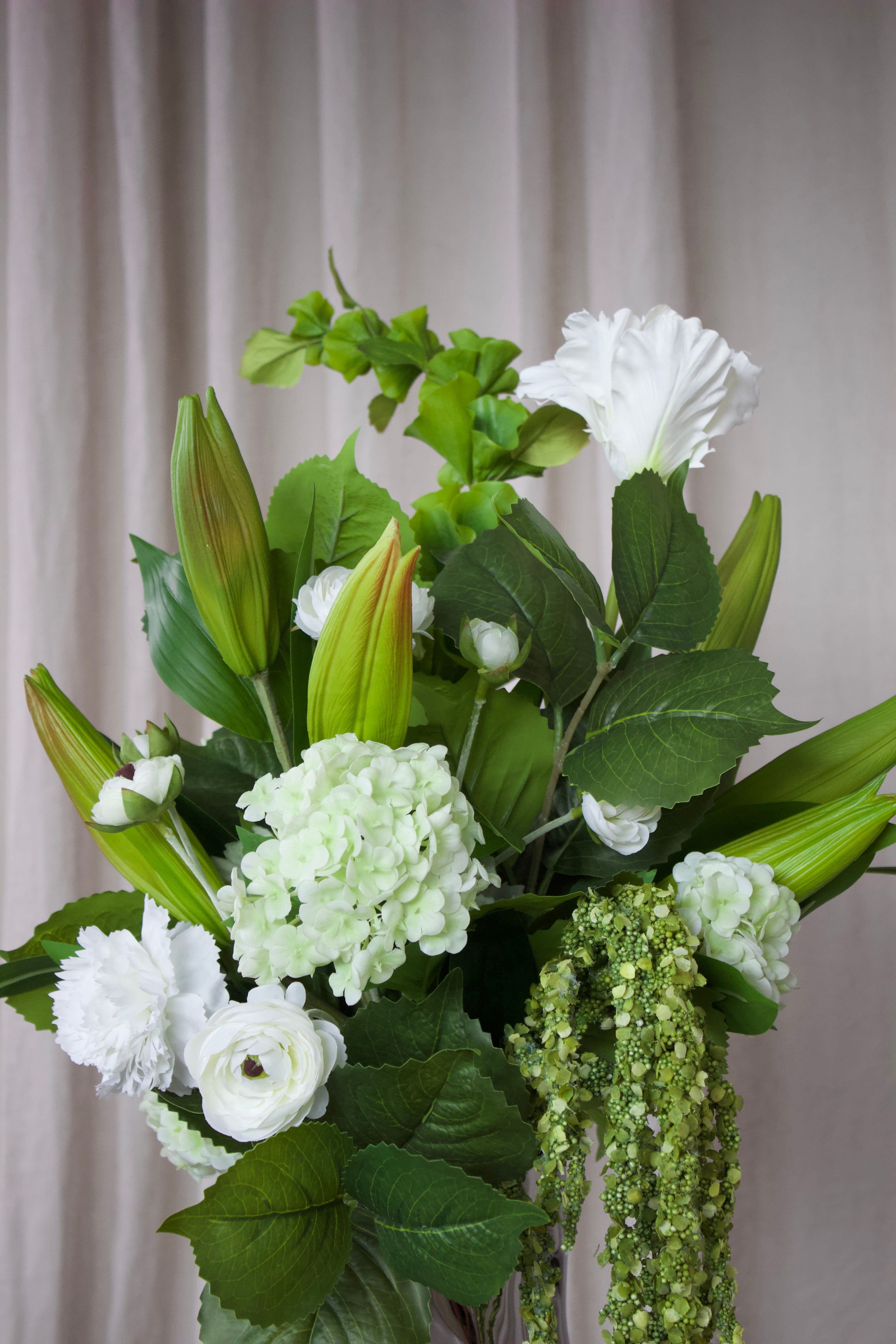 Green Thumb ist ein üppiger und üppiger Strauß mit viel Volumen, der ihm ein lebendiges und natürliches Aussehen verleiht. Er vereint Ästhetik und Leichtigkeit und verleiht dem Raum ein Gefühl von Reinheit und Harmonie. Ideal für alle, die ein schönes und neutrales Statement in ihrer Einrichtung suchen.