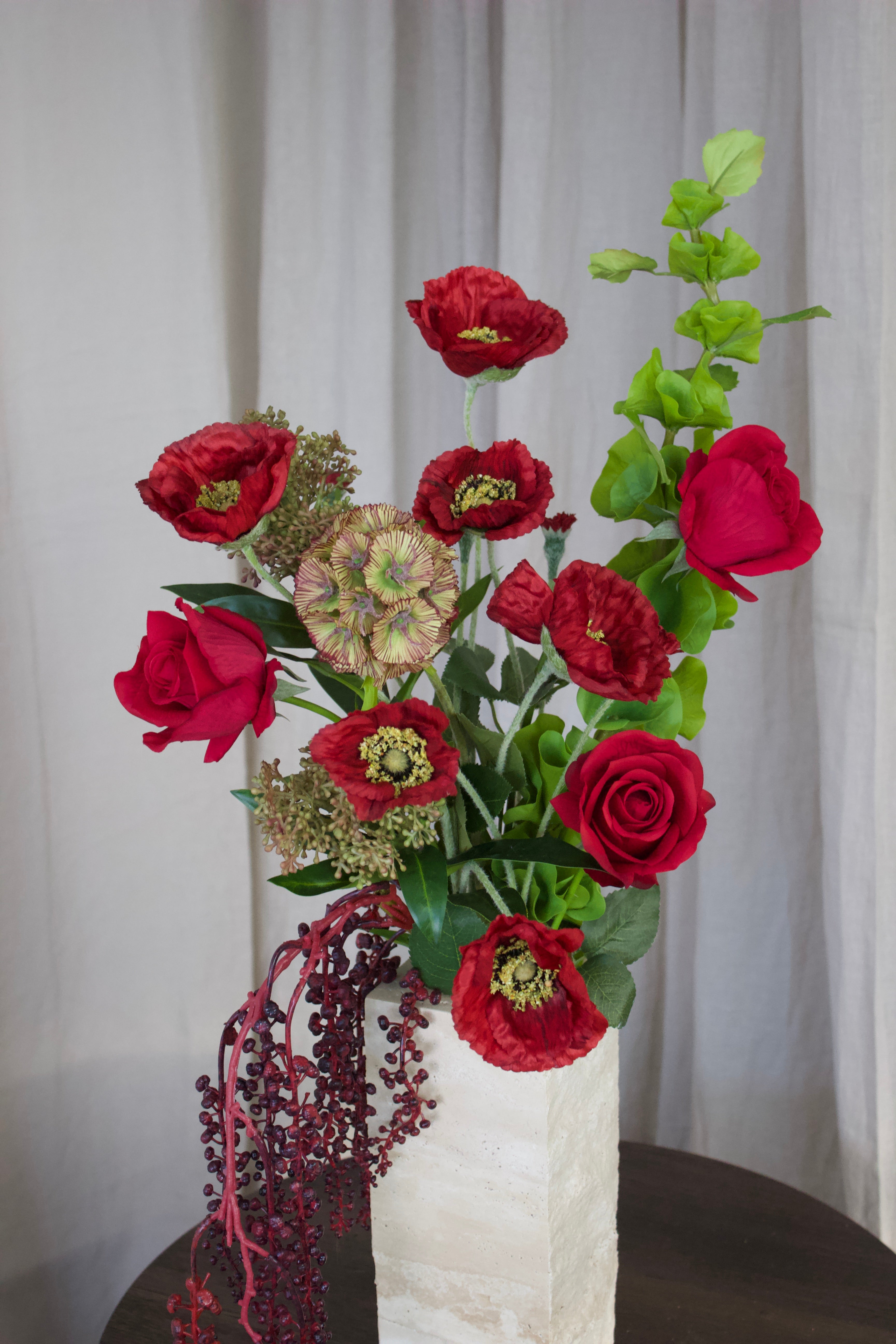 Hot & Spicy ist ein kräftiger und charaktervoller Strauß in tiefen Rottönen, abgerundet durch frische Grüntöne. Er strahlt Selbstvertrauen aus und verleiht Ihrem Raum einen Hauch von Dramatik und Charakter. Perfekt für alle, die Wärme, Kühnheit und unwiderstehliche Präsenz suchen.