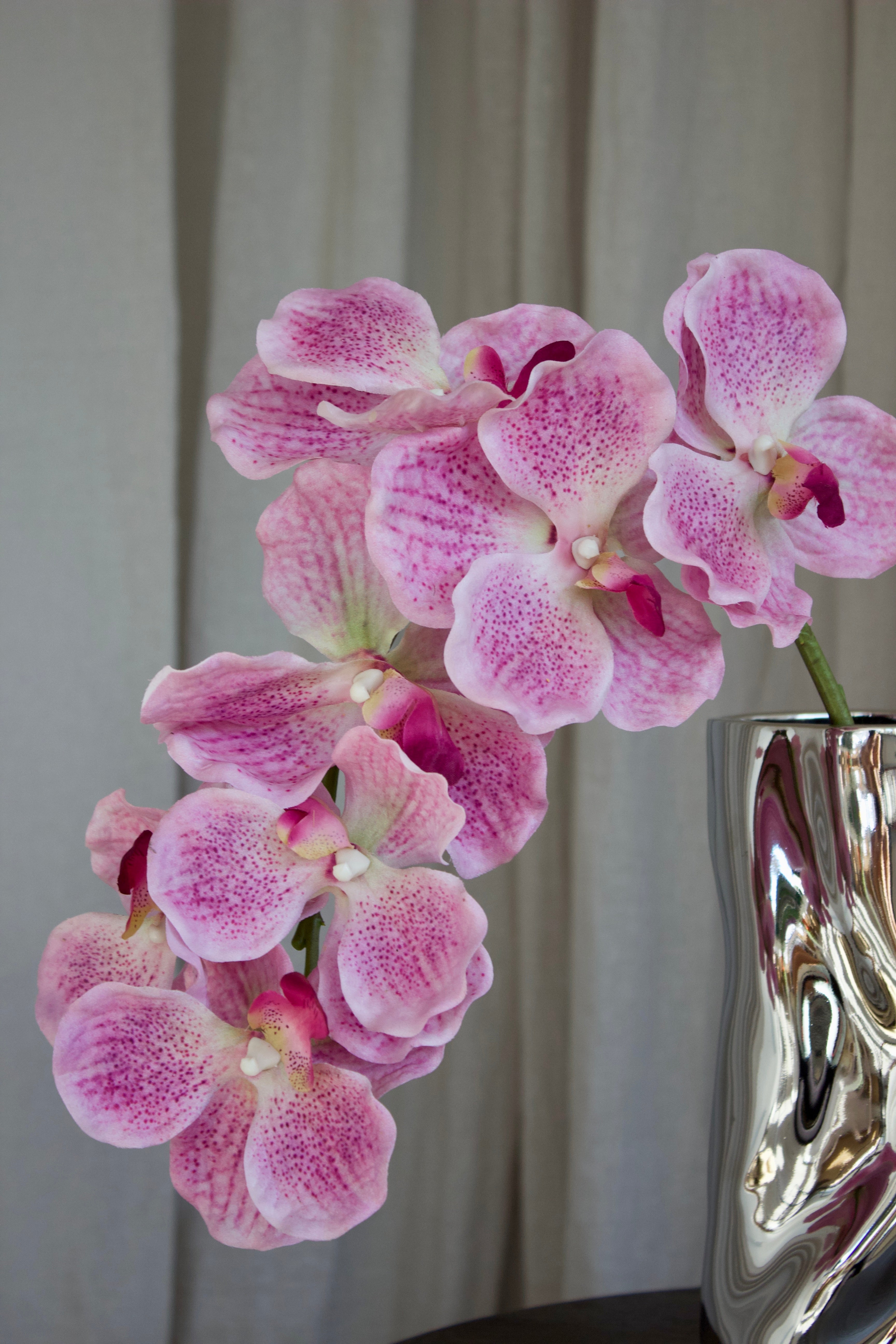 Die 7-köpfige künstliche Schmetterlingsorchidee ist eine sorgfältig gefertigte Kunstblume, die die Eleganz echter Orchideen einfängt. Sie ist 80 cm hoch und besteht aus sieben latexbeschichteten Blüten auf einem Kunststoffstiel, der mit einem Eisendrahtkern verstärkt ist. So lässt sie sich leicht zuschneiden und flexibel an Ihre Dekorationswünsche anpassen.
