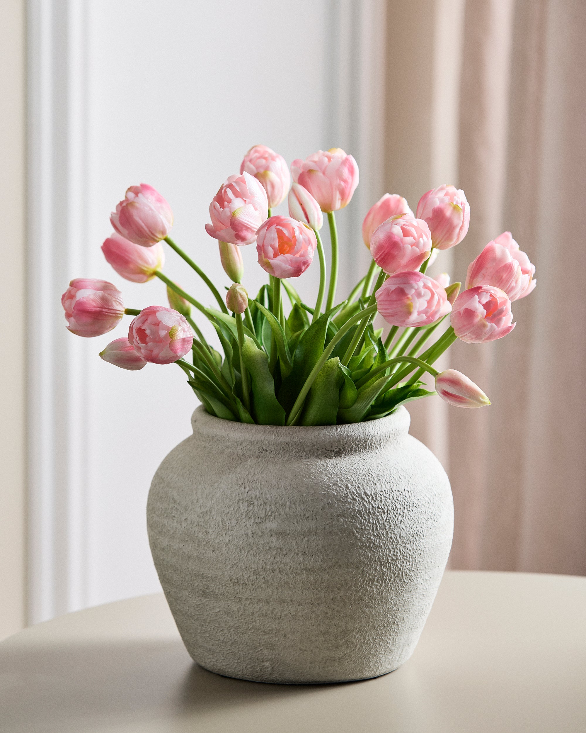 Jede Tulpe wird von Hand aus weichem Latex gefertigt und verfügt über mehrschichtige Blütenblätter in zarten Farbtönen und subtilen Variationen in Form und Textur. Das Ergebnis ist eine natürliche Fülle und Detailtreue, die die Essenz echter Tulpen einfängt – so realistisch, dass man den Unterschied kaum erkennen kann.
