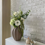 Eine sanfte und frische Komposition in hellgrünen und weißen Nuancen. Minty Mix strahlt Leichtigkeit aus – wie ein früher Sommermorgen, an dem das Licht sanft fällt und alles still und neu wirkt. Die klaren Linien werden durch den wilden Amaranthus durchbrochen, der dem Strauß einen lebendigen, verträumten Ausdruck verleiht.