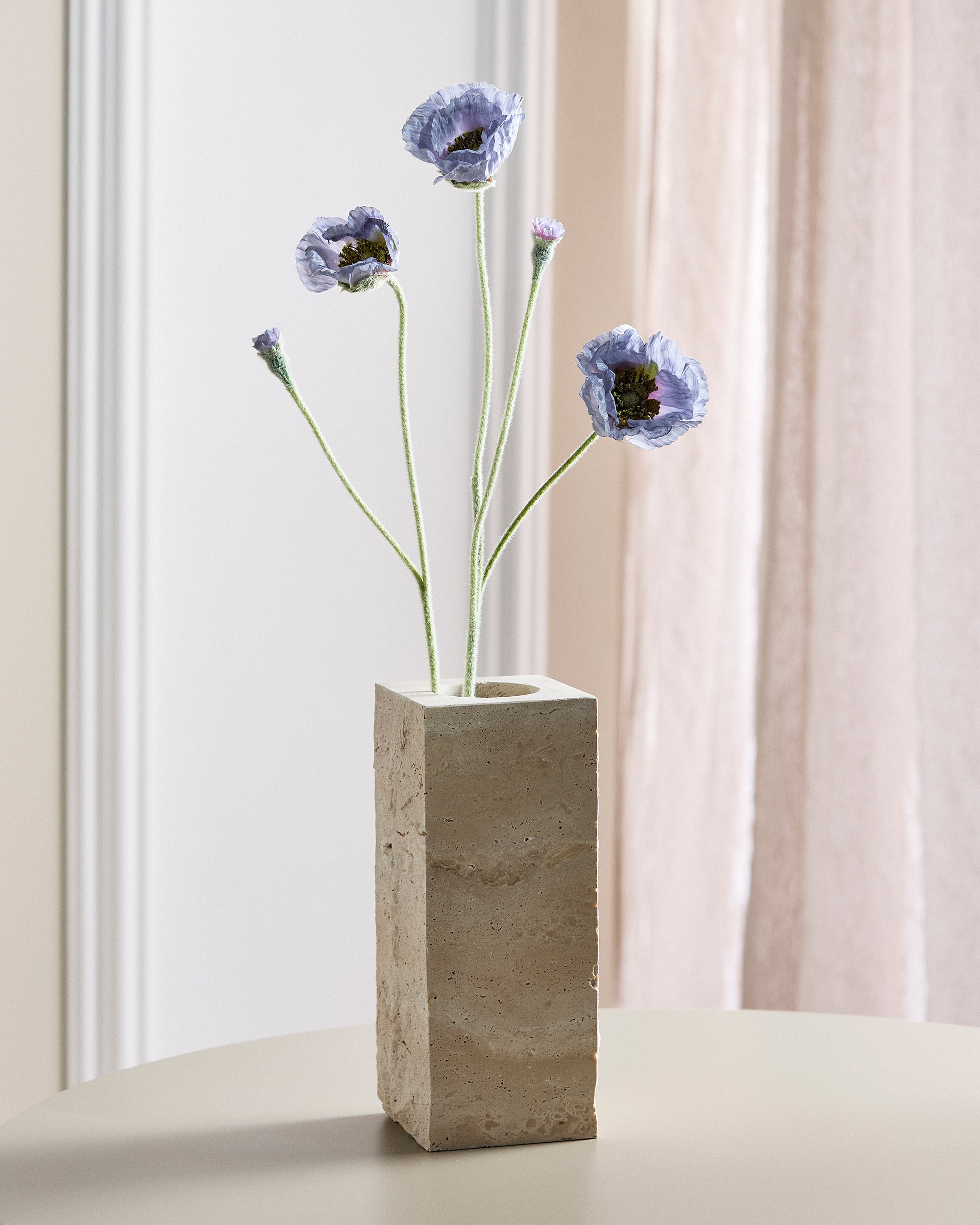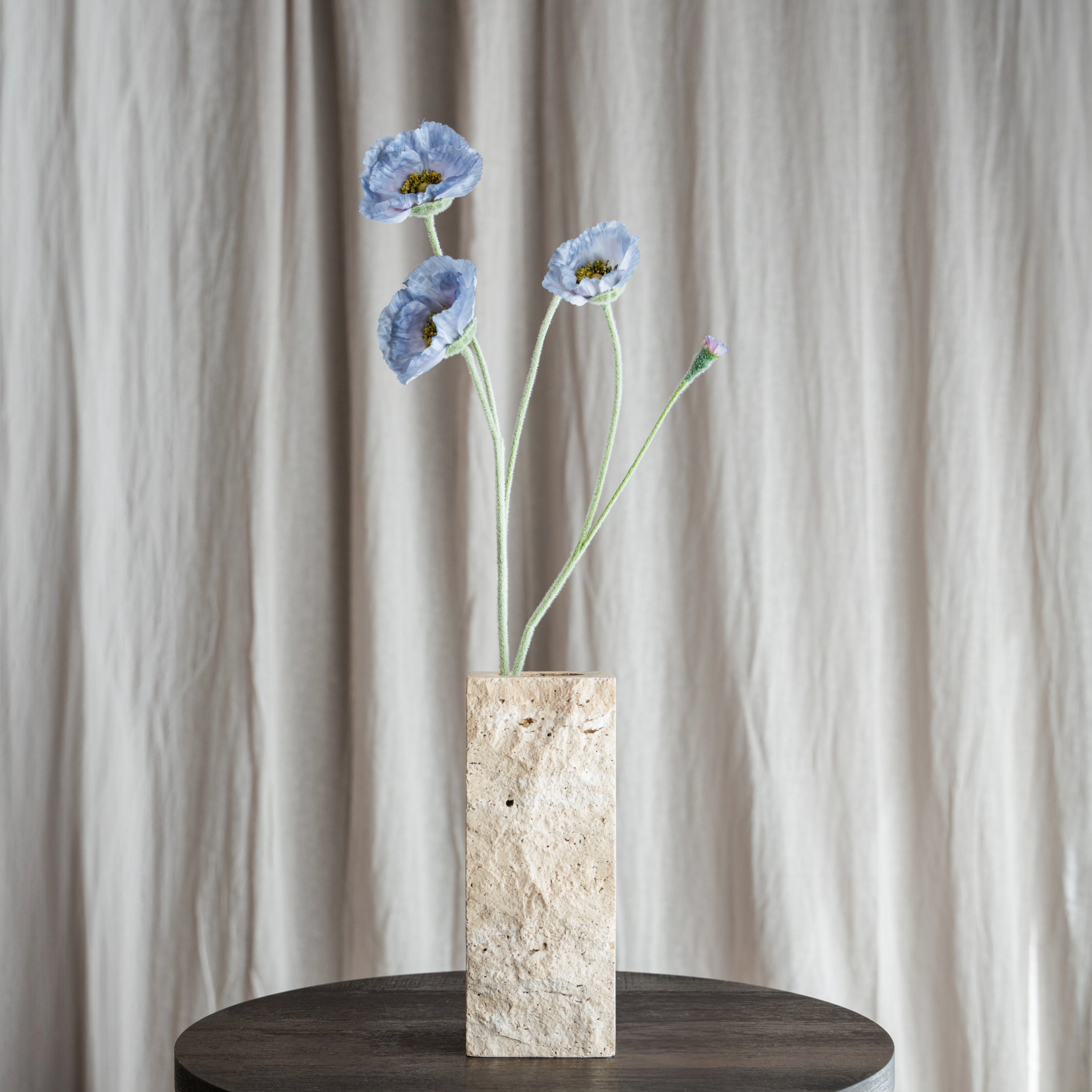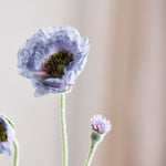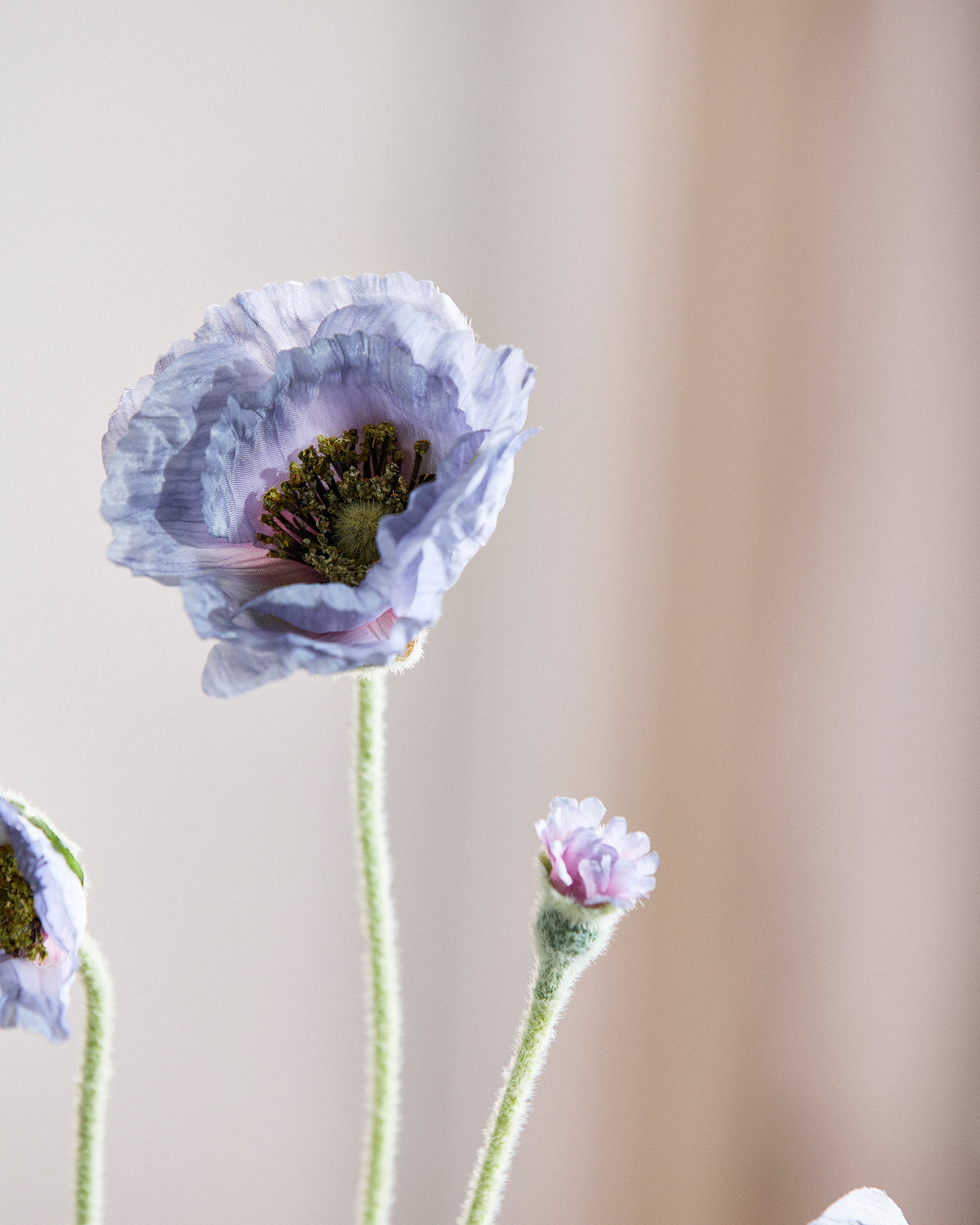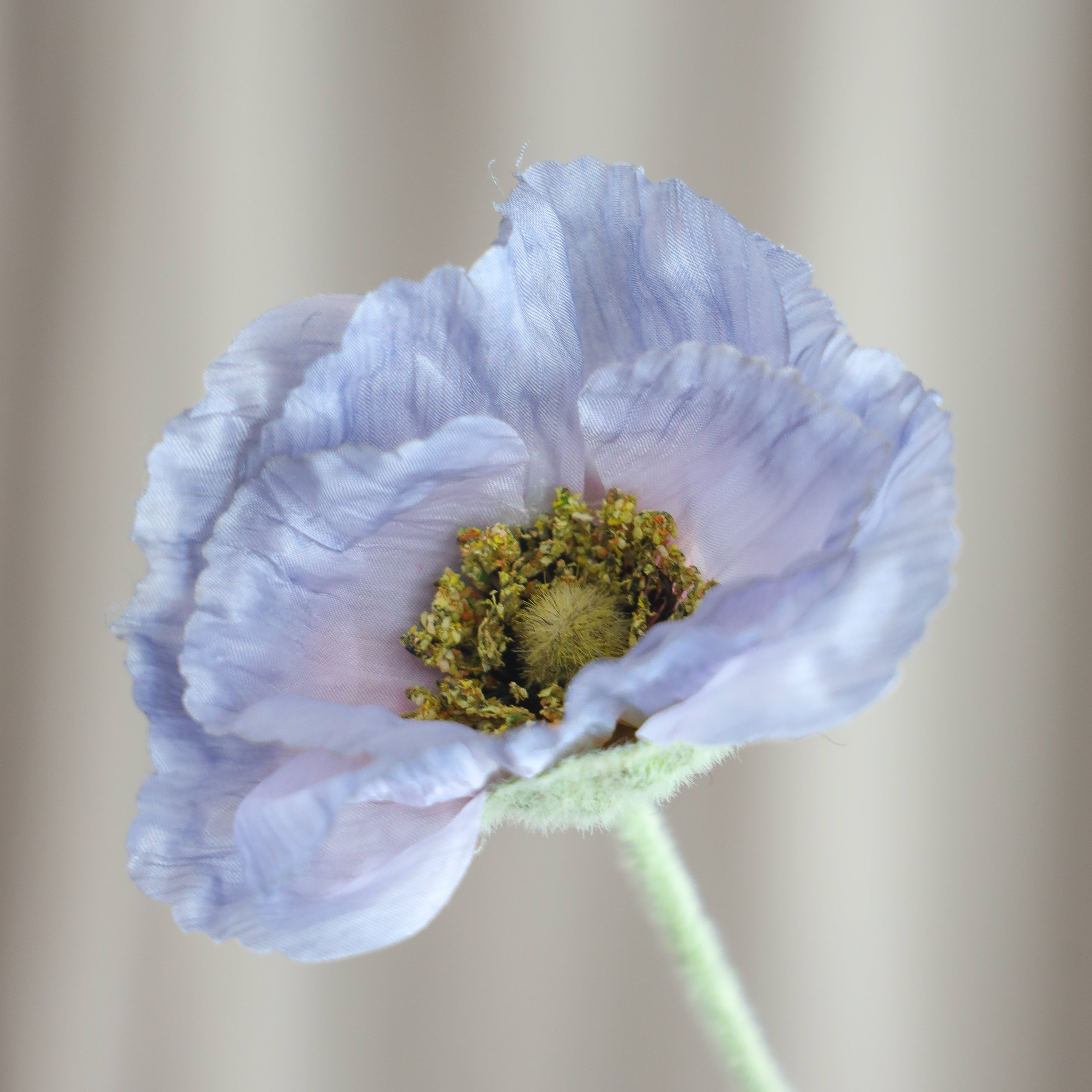 Ein markanter Mohn mit großen, gekräuselten Blütenblättern, dunkler Mitte und natürlich gebogenem Stiel. Er unterscheidet sich von unserem klassischen Mohn durch eine größere Blüte und ein markanteres Aussehen.