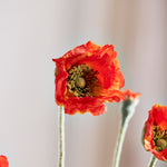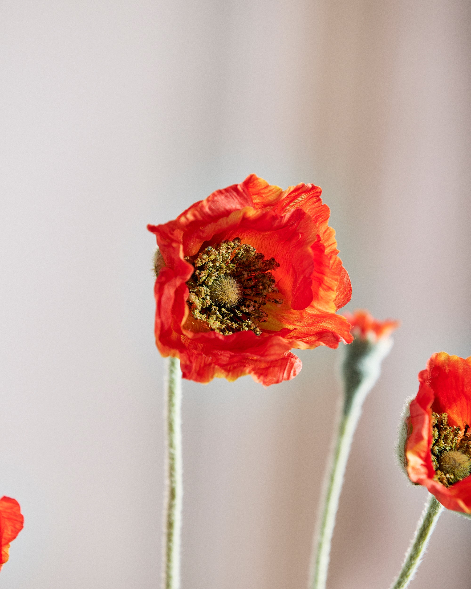 Ein markanter Mohn mit großen, gekräuselten Blütenblättern, dunkler Mitte und natürlich gebogenem Stiel. Er unterscheidet sich von unserem klassischen Mohn durch eine größere Blüte und ein markanteres Aussehen.