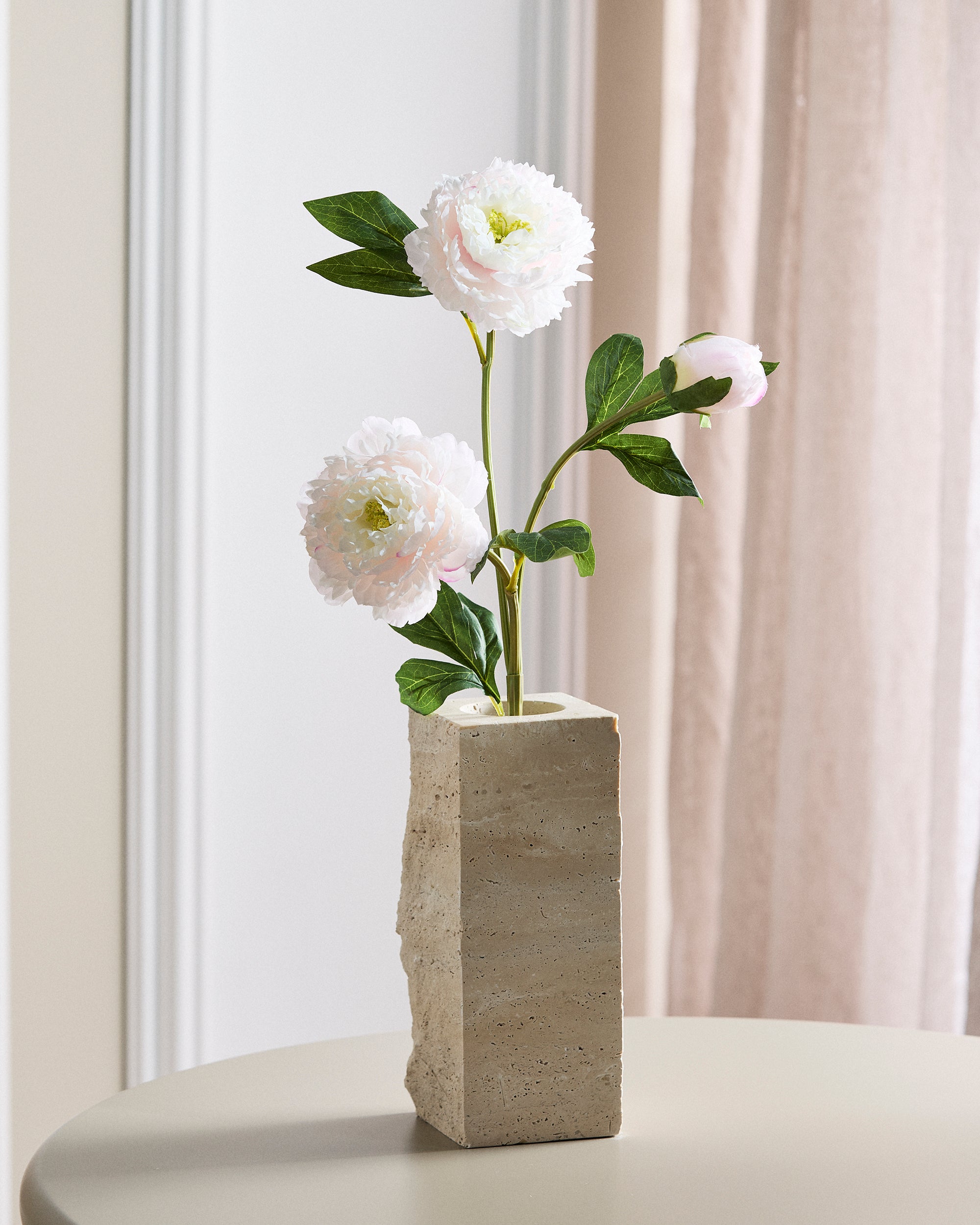 Unsere Pfingstrose verkörpert natürliche Schönheit mit üppigen, voluminösen Blütenblättern, die Romantik und Eleganz ausstrahlen. Mit einer Höhe von 58 cm verleihen diese Seidenblumen jedem Arrangement eine exquisite Note, egal ob allein oder in Kombination mit anderen Blumen.