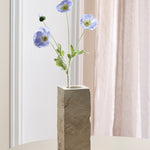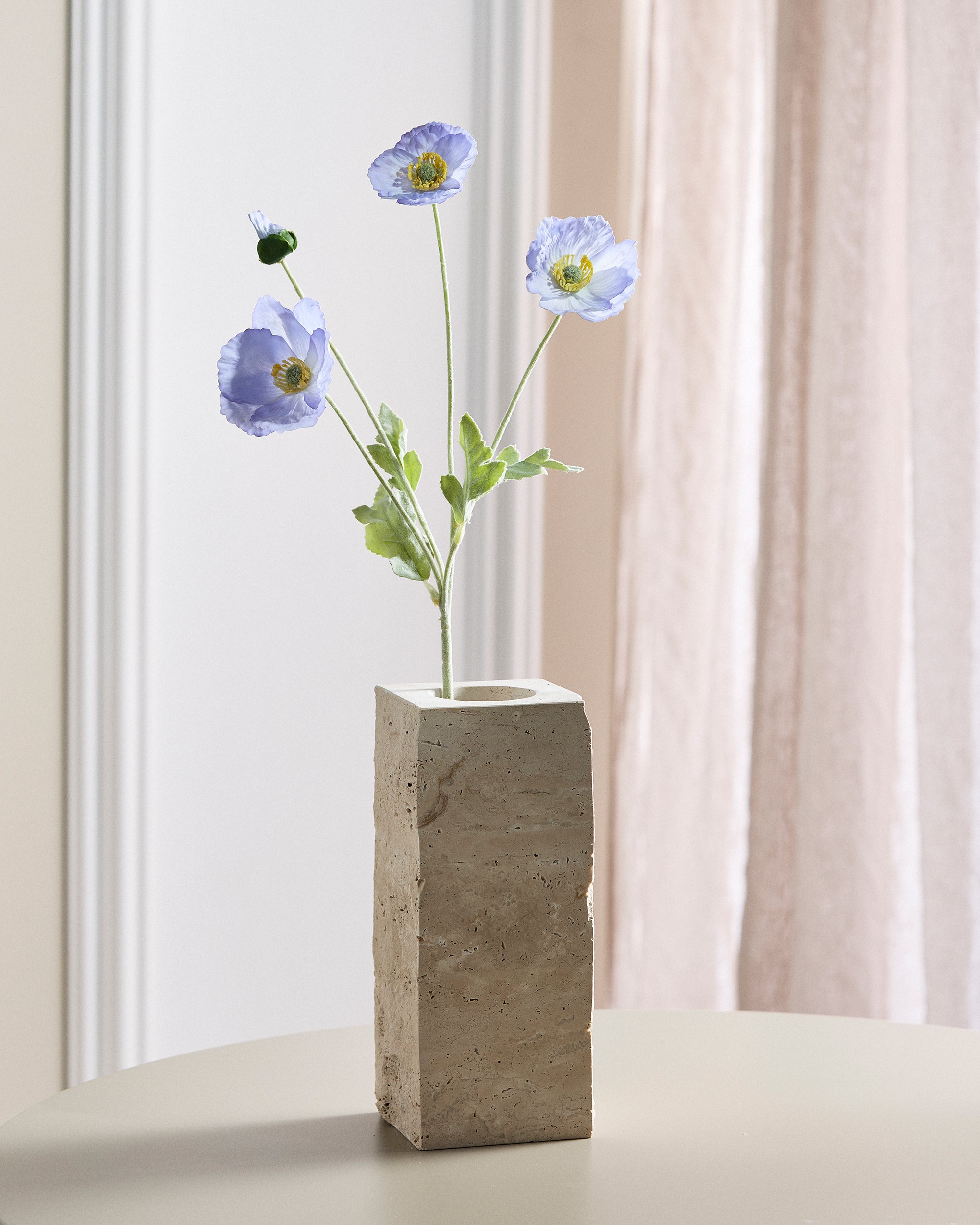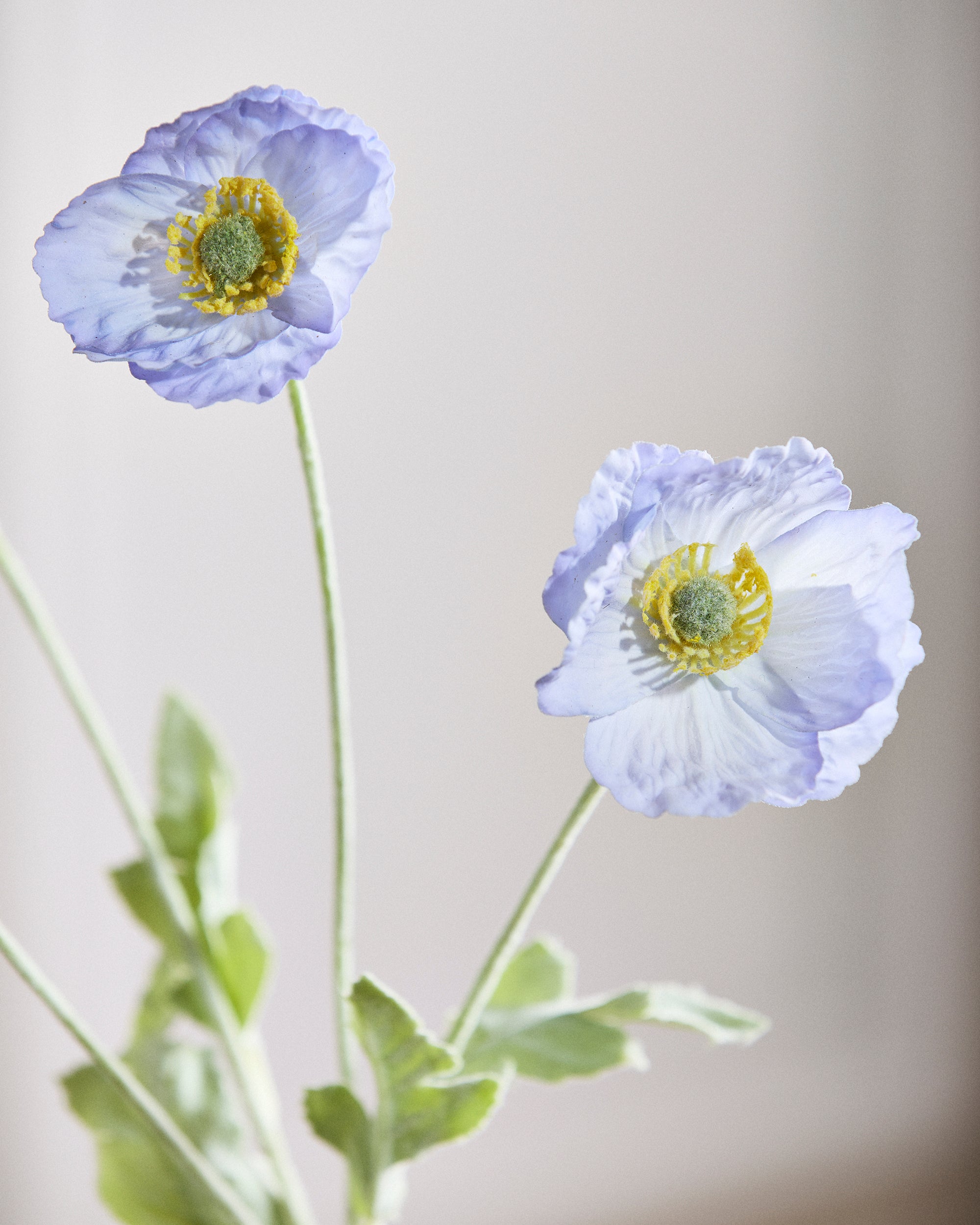 Eine Lila Mohnblüte mit weichen, gedeckten Seidenblütenblättern – latexbeschichtet für ein naturgetreues, haptisches Erlebnis. Die Blütenblätter haben eine matte Oberfläche und eine kühle, natürliche Textur, genau wie eine frisch gepflückte Blume. Wunderschön allein oder in Kombination mit Komplementärfarben.