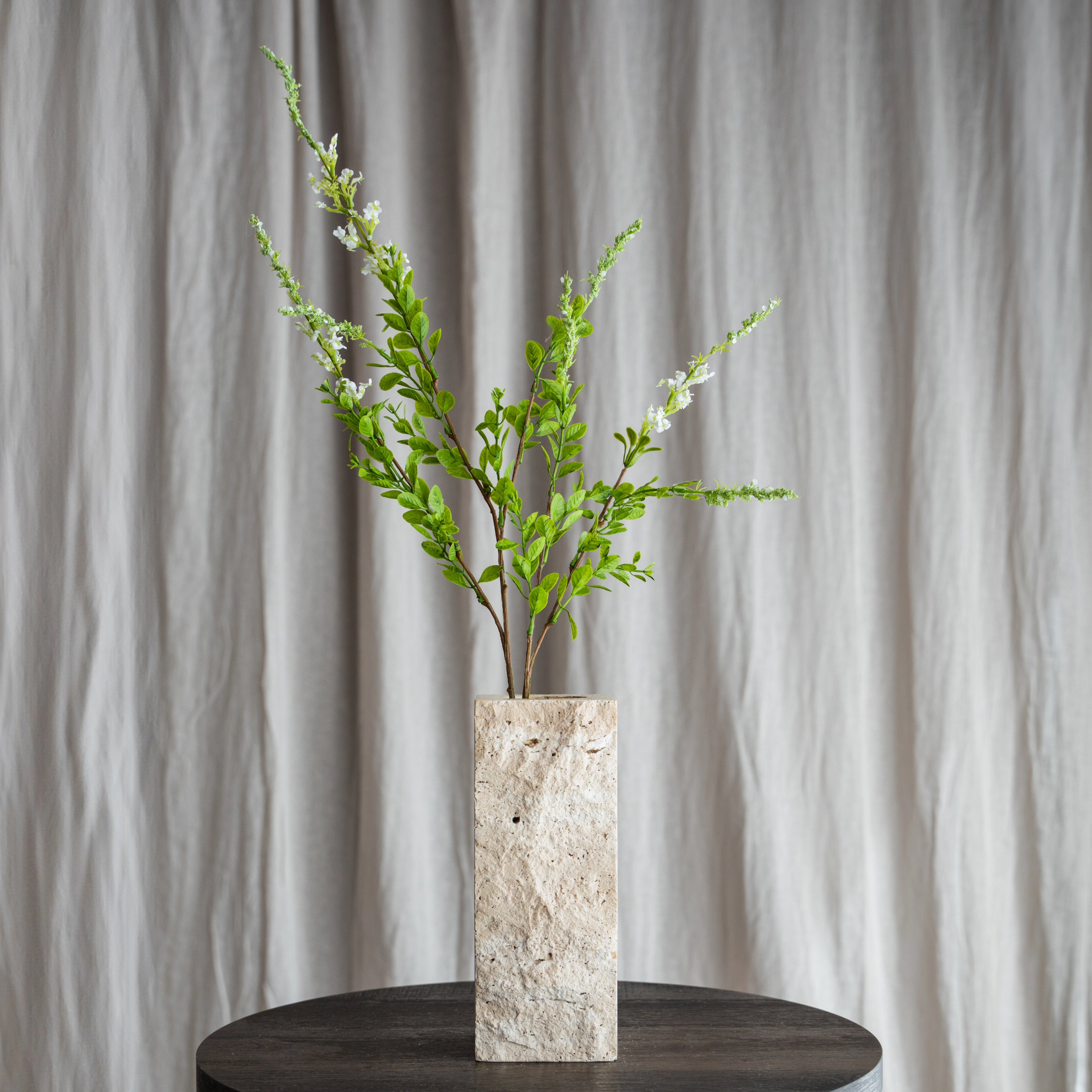 Es verleiht dem Strauß ein Gefühl von Natürlichkeit und Wildheit und verleiht Ihrem Arrangement einen Hauch von Unvorhersehbarkeit und Szenografie, aber auch einen zeitlosen ästhetischen Ausdruck.