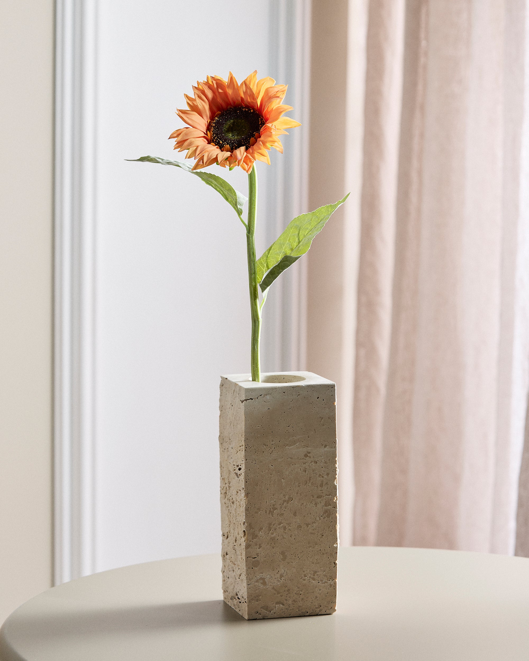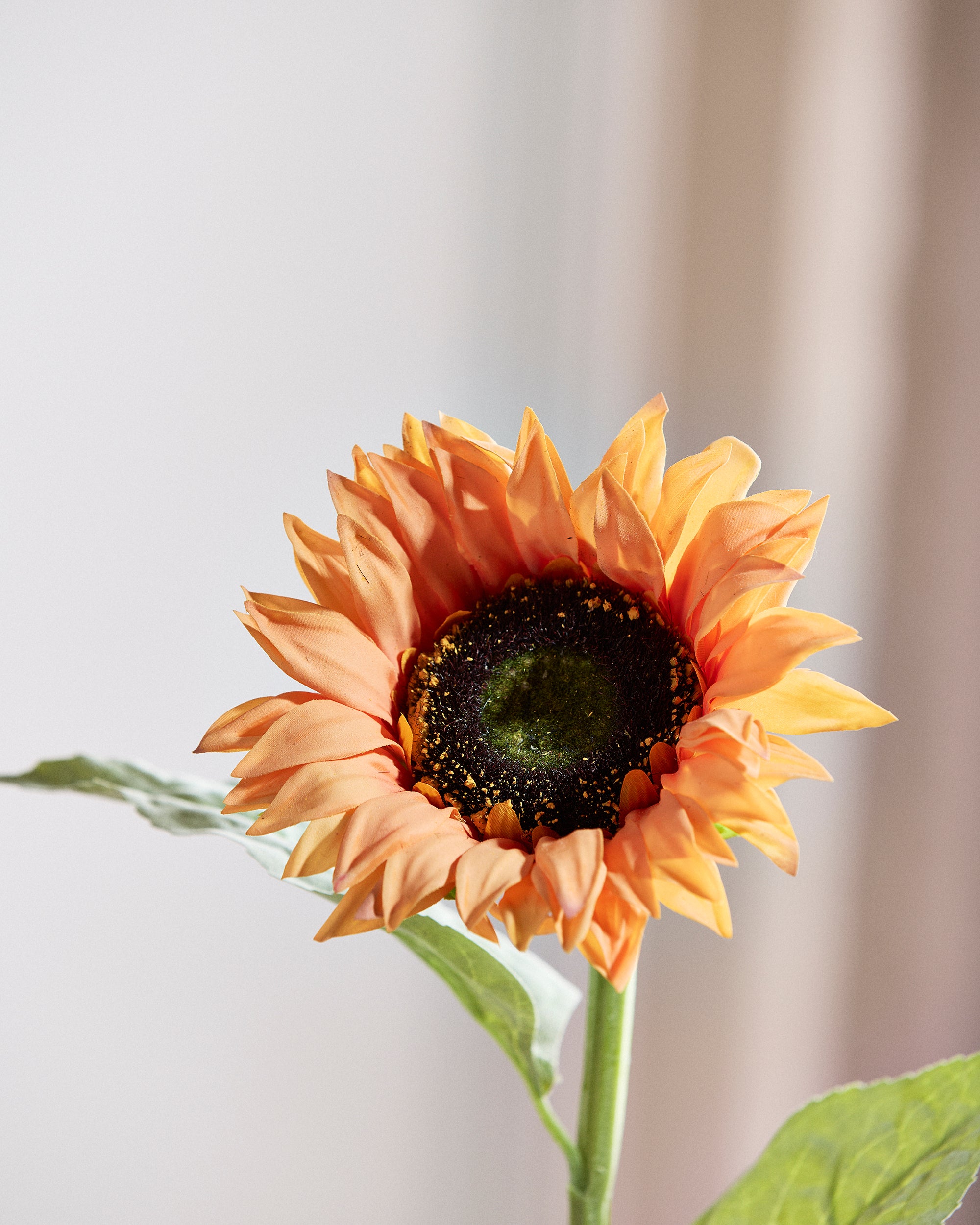 Lebensechte Sonnenblume mit seidig-weichen Blütenblättern in gebranntem Orange. Aus Latex mit Liebe zum Detail gefertigt – fast wie frisch gepflückt.