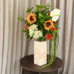 Terrakotta ist warm, wild und gebräunt – ein großes und volles Bouquet mit Charakter und trockener Schönheit. Schattierungen von Goldorange und sanftem Grün vermitteln das Gefühl von südlichem Sommer und sonnenwarmen Felsen.